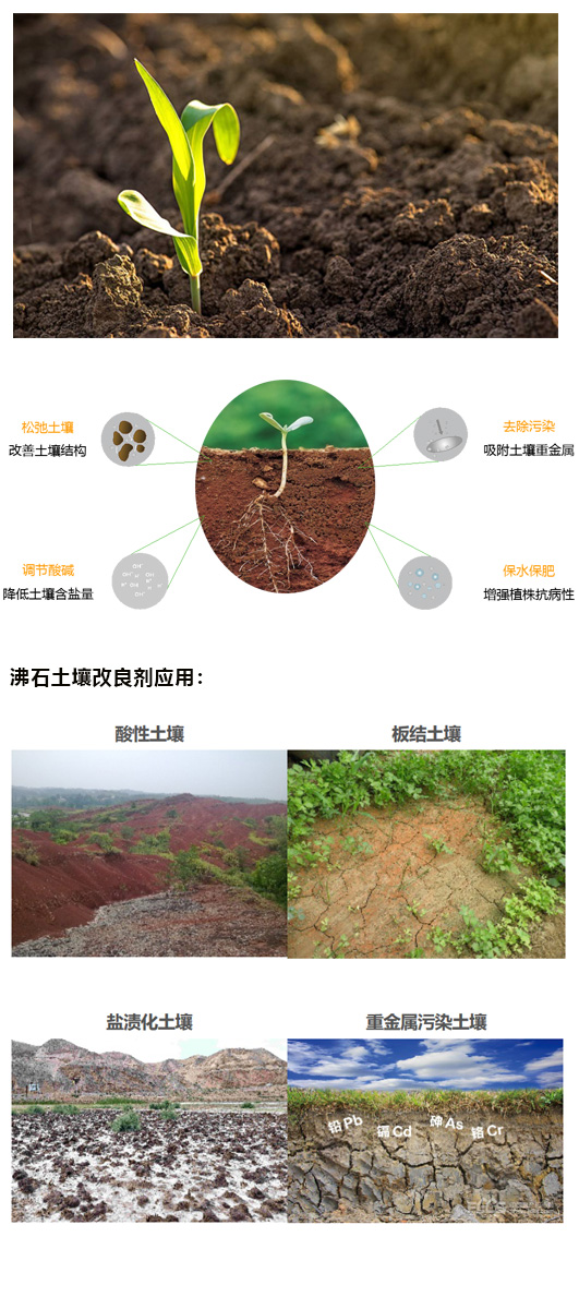 沸石土壤改良劑是以天然沸石為原料制備的功能型土壤修復(fù)調(diào)理劑。采用天然沸石經(jīng)特殊工藝復(fù)合而成,充分激發(fā)天然沸石獨(dú)有的特性與功能,對板結(jié)土壤、次生鹽漬化土壤、重金屬污染土壤、放射性污染場地等具有特殊功效。采用沸石技術(shù)實(shí)施土壤修復(fù),成本低、見效快、物理修復(fù)、無二次污染!